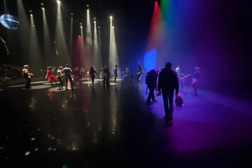 Les artistes Dory Sánchez Balibrea, Laura Alcalà Freudenthal i Mireia de Querol Duran, juntament amb el dissenyador de llum Jou Serra, han creat un espai pensat perquè puguem gaudir plegats, explorar la nostra creativitat i convertir-nos en protagonistes de la pista de ball. Una experiència única on la dansa en un espai diàfan i privilegiat, envoltats de llum, color i músiques que ens conviden a moure el cos. Un espai on la llum i la música es fusionen per transformar l’espai en una festa oberta i lliure, ideal per a compartir i gaudir junts.