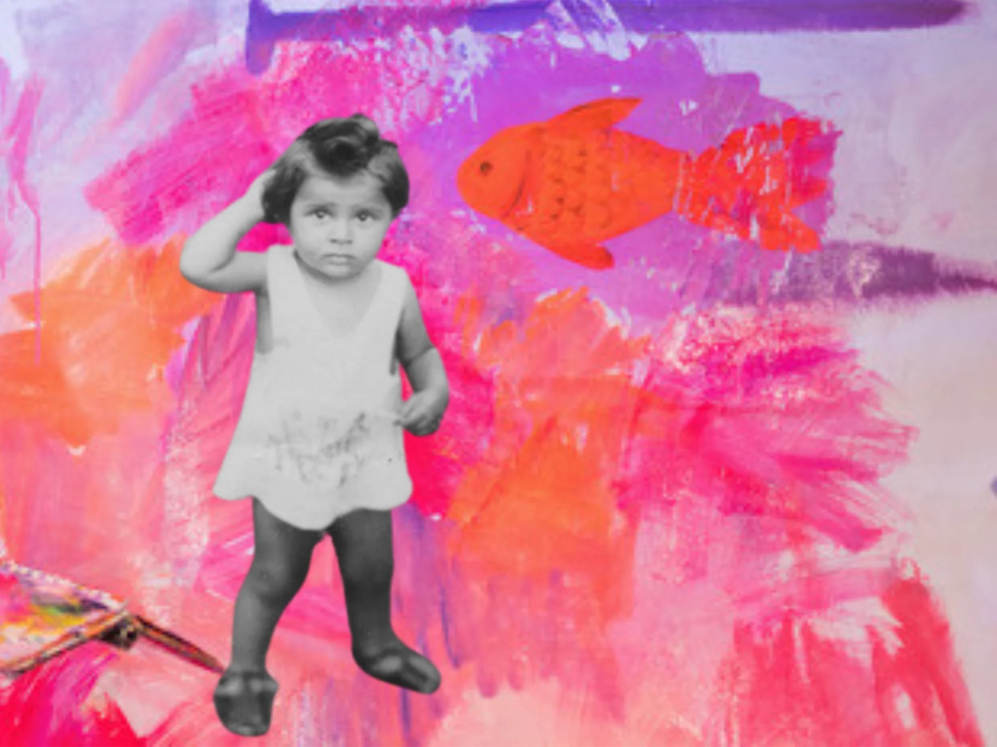 The little girl in the picture and I would like to invite you on a little journey into the world of theatre without words. The little girl, who is holding her head so that it doesn't fly away, is thinking, perhaps consciously for the first time. This picture shows a state and does not need words to do so.