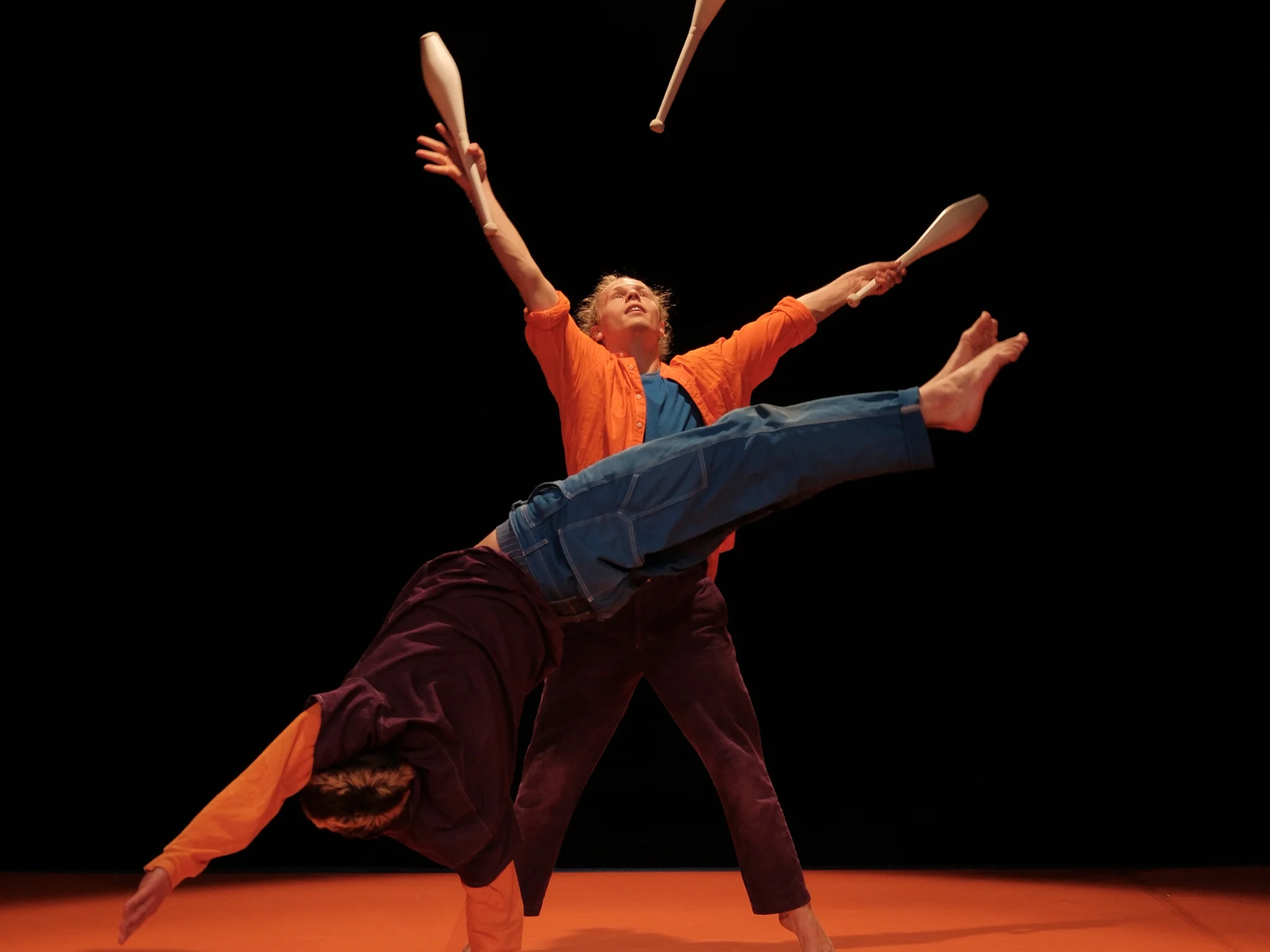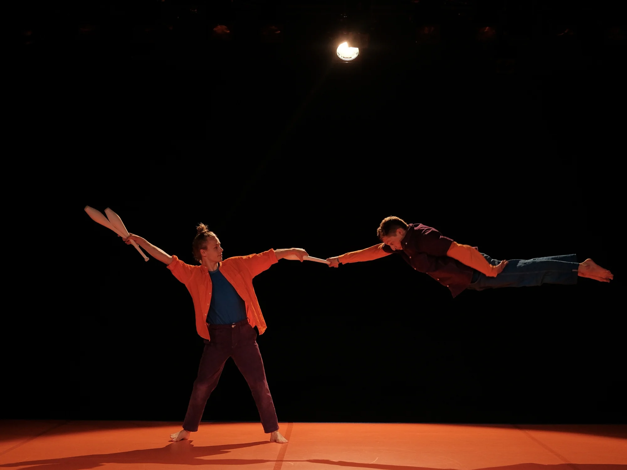 Producción: The Fratellini Academy / Coreografía: Sylvère Lamotte / Creado con Basil Le Roux y Markus Vikse / Interpretación: Basil Le Roux y Markus Vikse o Sian Foster y Pablo Garretón Cortés o Simón Aravena y Matthis Walczak y Régie Clément Janvier o Sébastien Gourdier o Lucas Veriepe / Creación sonora: Louise Blancardi / Diseño de vestuario: Marion Vasnesch / Iluminación: Jean-Philippe Borgogno.