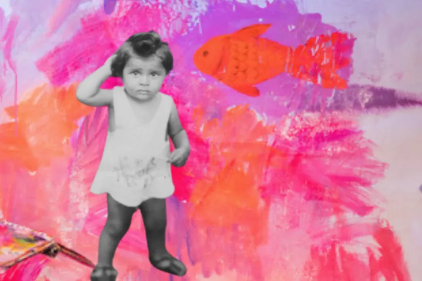 La niña de la imagen y yo quisiéramos invitaros a un pequeño viaje al mundo del teatro sin palabras. La niña, que se sostiene la cabeza para que no se le vuele, está pensando, quizás conscientemente por primera vez. Esta imagen muestra un estado y no necesita palabras para hacerlo.
