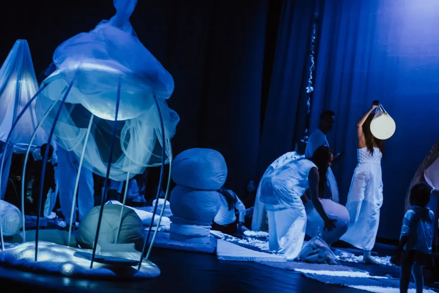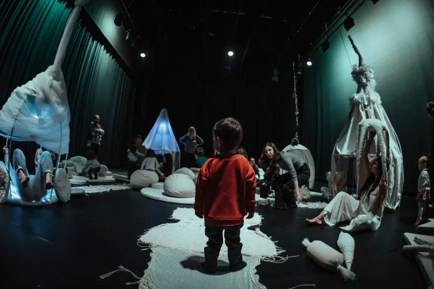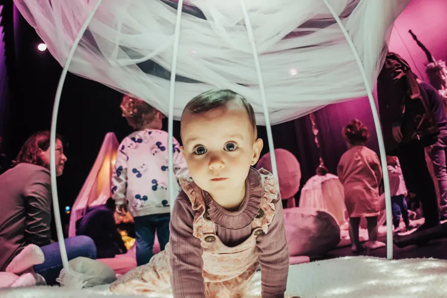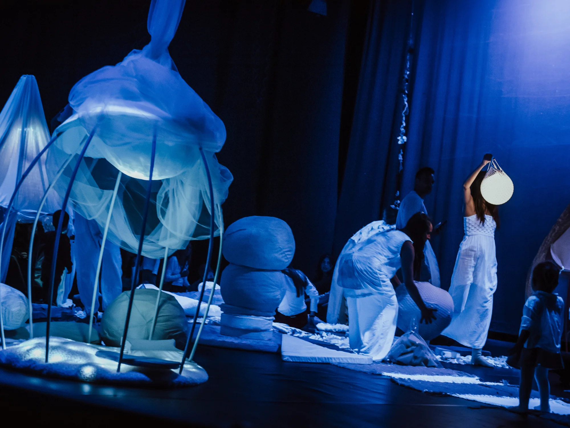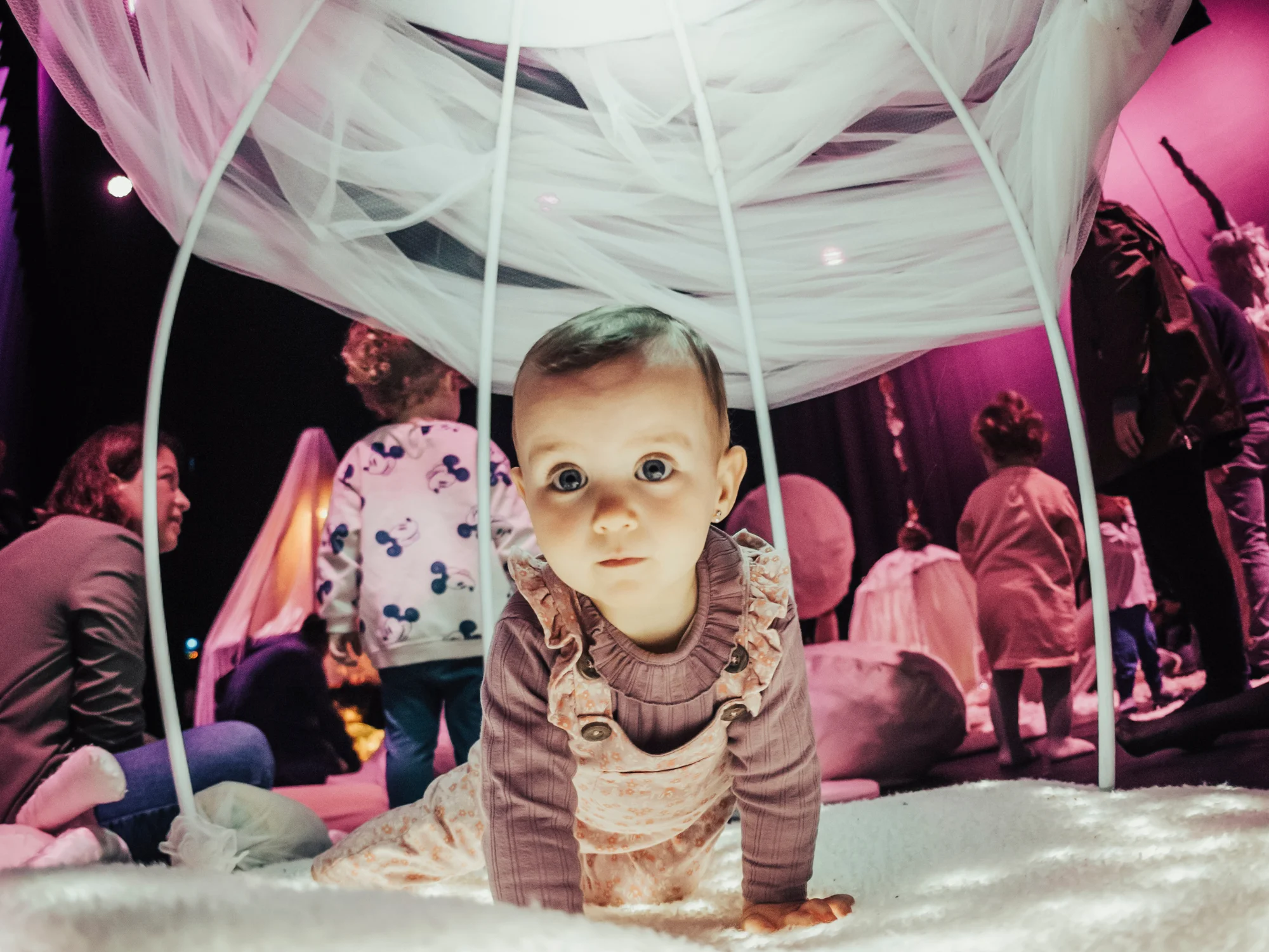 Una instalación para descubrir, imaginar y soñar. Un pequeño pueblo formado por cuevas de ropa y tejidos sorprendentes, que parecen construidos como lo hacen los animales en plena naturaleza, con materiales de diferentes texturas y olores. Un lugar donde esconderse y, desde dentro, observar el mundo. Caminos que nos llevan a casa de los demás, donde encontraremos diferentes colores, músicas y ruidos extraños. Cojines que hablan, que roncan, que ríen y cantan. Un espacio para explorar en familia, para relajarnos y disfrutar juntos de la comodidad del propio refugio.